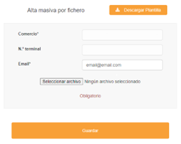 - Subida en lotes o masiva: descargándote una plantilla, podrás subir tus clientes de una sóla vez para tenerlos disponibles en el Portal de Administración del TPV Virtual.